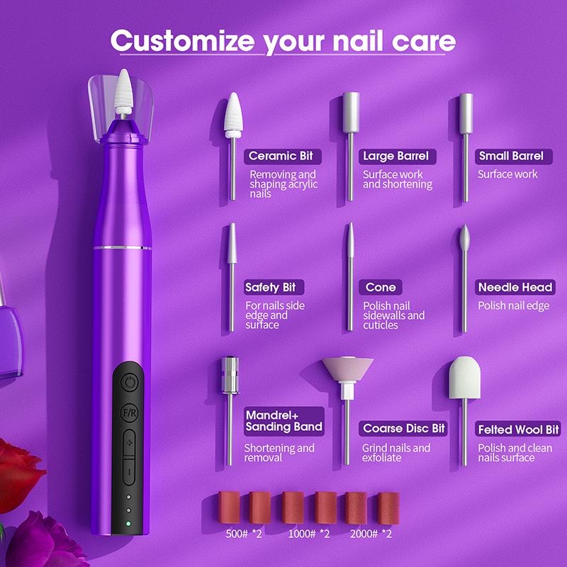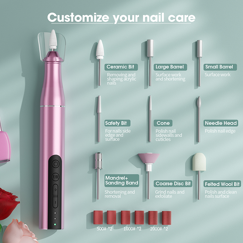 ชุดสว่านเล็บไร้สายมีสายพานขัดและดอกสว่านหลายแบบให้เลือกที่เหมาะกับตะปูประเภทต่างๆ หากต้องการเปลี่ยนสว่าน เพียงดึงออก แทนที่ด้วยสว่านที่ต้องการ แล้วกดปุ่มเปิด/ปิดเพื่อใช้ ทำให้เป็นของขวัญในอุดมคติสำหรับเพื่อนผู้หญิงของคุณ หากคุณมีคำถามใดๆเกี่ยวกับผลิตภัณฑ์นี้ โปรดติดต่อเรา