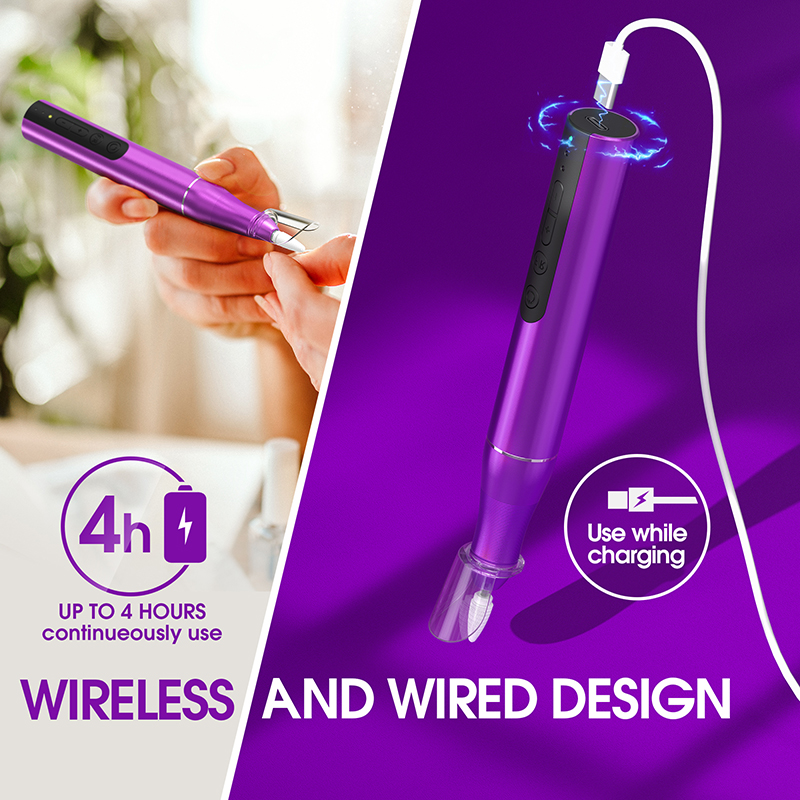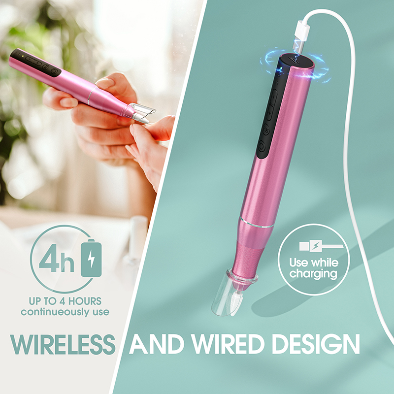 เครื่องเจาะเล็บสำหรับเล็บอะคริลิคได้รับการออกแบบให้มีน้ำหนักเบา (85 กรัม) และสามารถใส่ในกระเป๋าเงินหรือกระเป๋าเสื้อผ้าได้ นอกจากนี้ยังมาพร้อมกับสายชาร์จ USB ที่สามารถเสียบเข้ากับอุปกรณ์ USB เพื่อชาร์จได้อย่างง่ายดาย ทำให้คุณเพลิดเพลินกับการดูแลเล็บได้ทุกที่ทุกเวลา