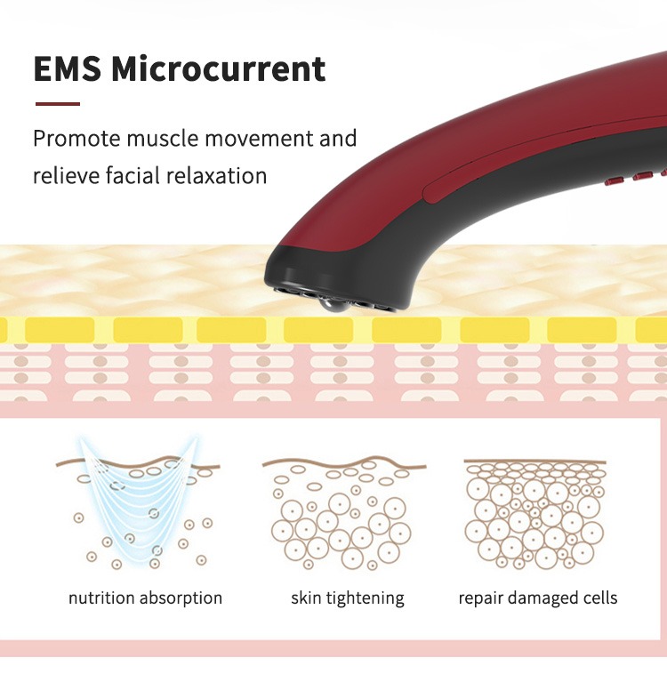 เครื่อง EMS Galvanic เครื่องกระชับผิวด้วยไฟ LED สีแดงและสีน้ำเงิน