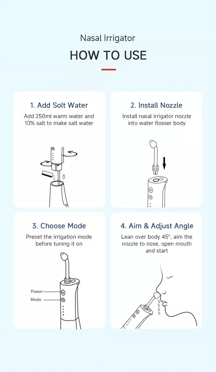 เครื่องล้างจมูกไฟฟ้า 4 โหมด สำหรับโรคจมูกอักเสบ ไซนัส