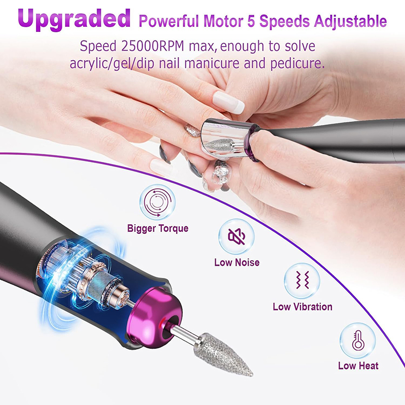 เครื่องเจาะเล็บไฟฟ้า มอเตอร์ทรงพลังที่ได้รับการอัพเกรดเหมาะสำหรับทุกความต้องการในการทำเล็บมือและเล็บเท้าของคุณ รวมถึงการถอดเล็บอะคริลิก เล็บเจลโพลี เจลแมลงเต่าทอง เล็บผงจุ่ม หนังกำพร้า ผิวหนังที่ตายแล้ว แคลลัส และเล็บหนา
