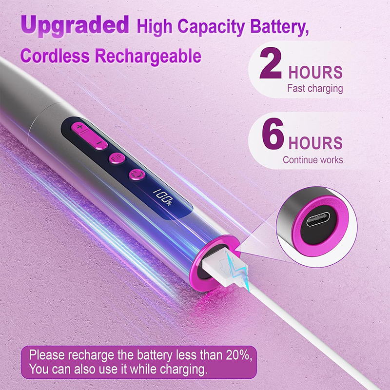 สว่านเจาะเล็บไฟฟ้า อัพเกรดแบตเตอรี่ความจุสูง ชาร์จเร็ว 2 ชั่วโมง และใช้งานต่อได้ 6 ชั่วโมง ตะไบเล็บไฟฟ้าเหมาะสำหรับอะแดปเตอร์ไฟ USB แล็ปท็อป พลังงานมือถือ ฯลฯ หากพลังงานสว่านเล็บไร้สายน้อยกว่า 20% คุณสามารถใช้ในขณะที่ชาร์จได้