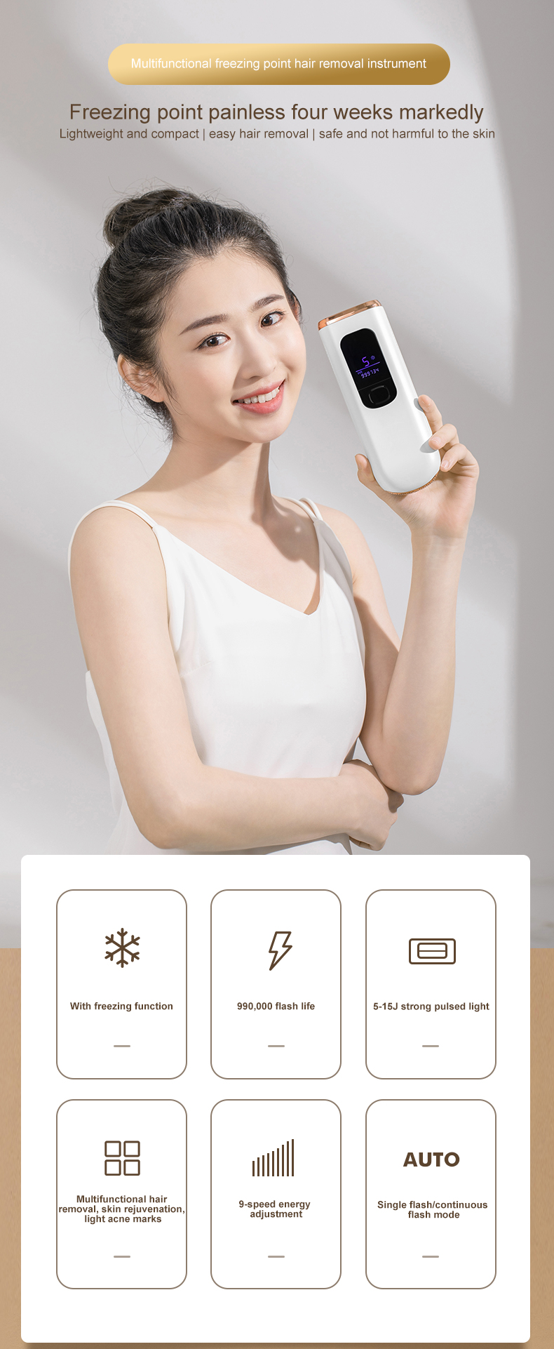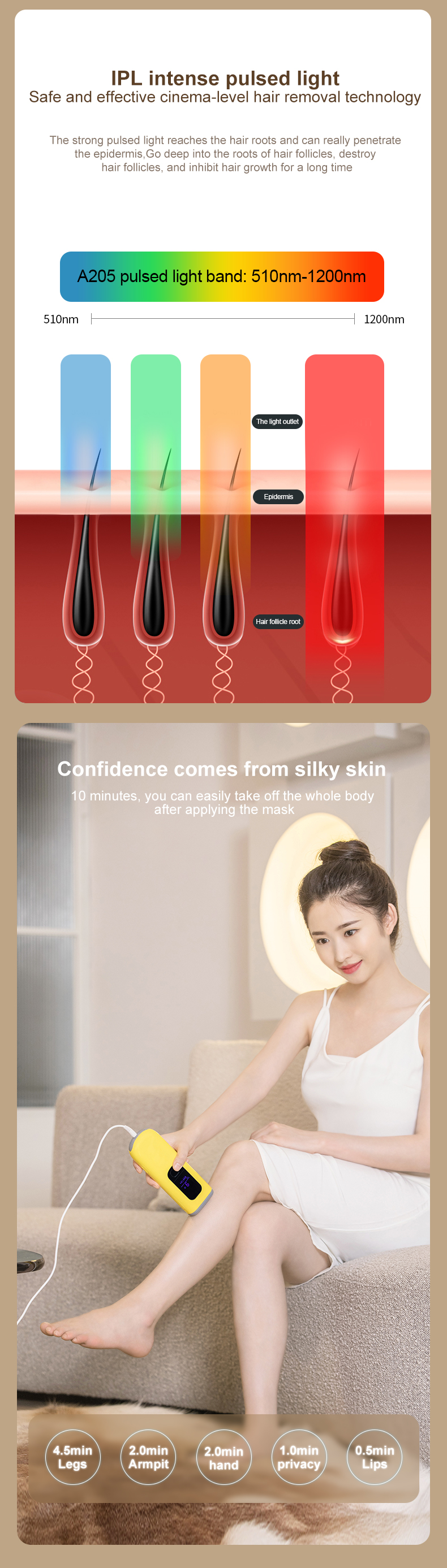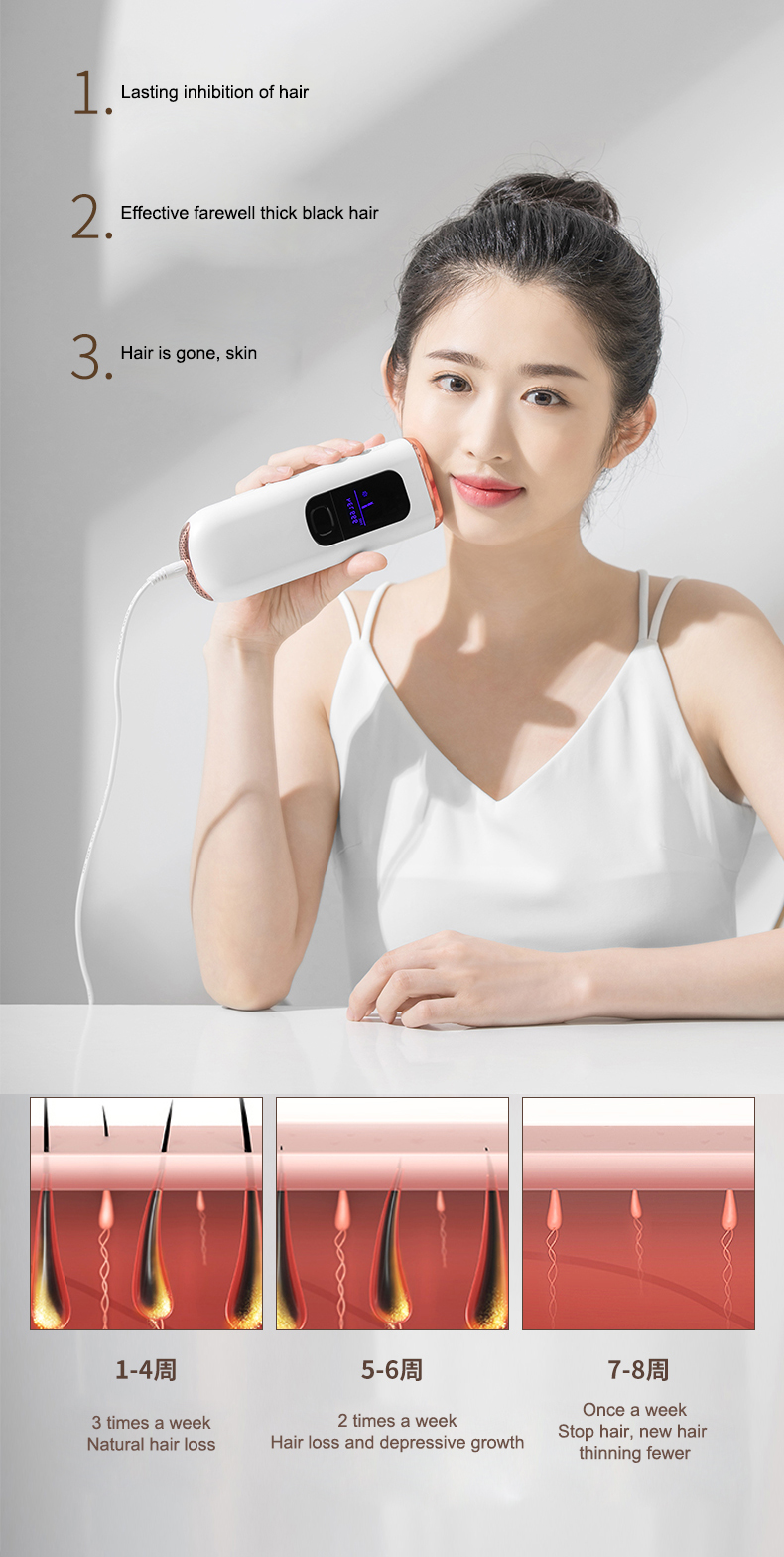 (หมายเหตุ: 1 ไม่เหมาะสำหรับผิวที่มีรอยสักและผิวสีแทนมากเกินไป บริเวณที่เป็นบาดแผล และตั้งครรภ์ 2 เป็นอุปกรณ์แบบเสียบปลั๊ก โปรดให้อุปกรณ์เชื่อมต่อกับพลังงานเสมอในระหว่างการรักษา )