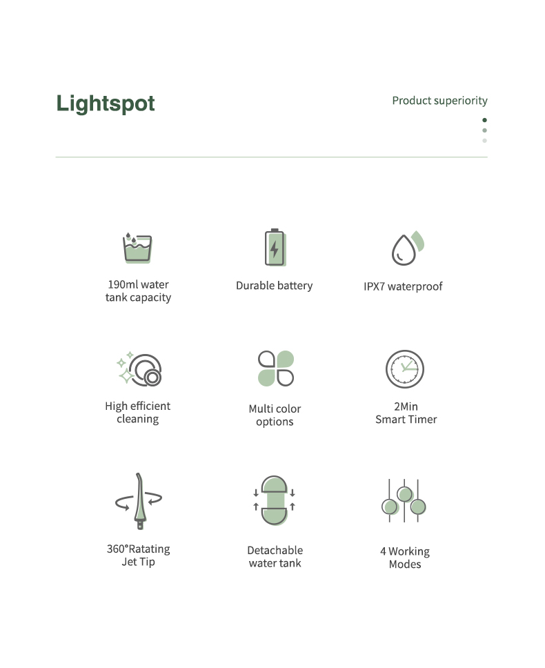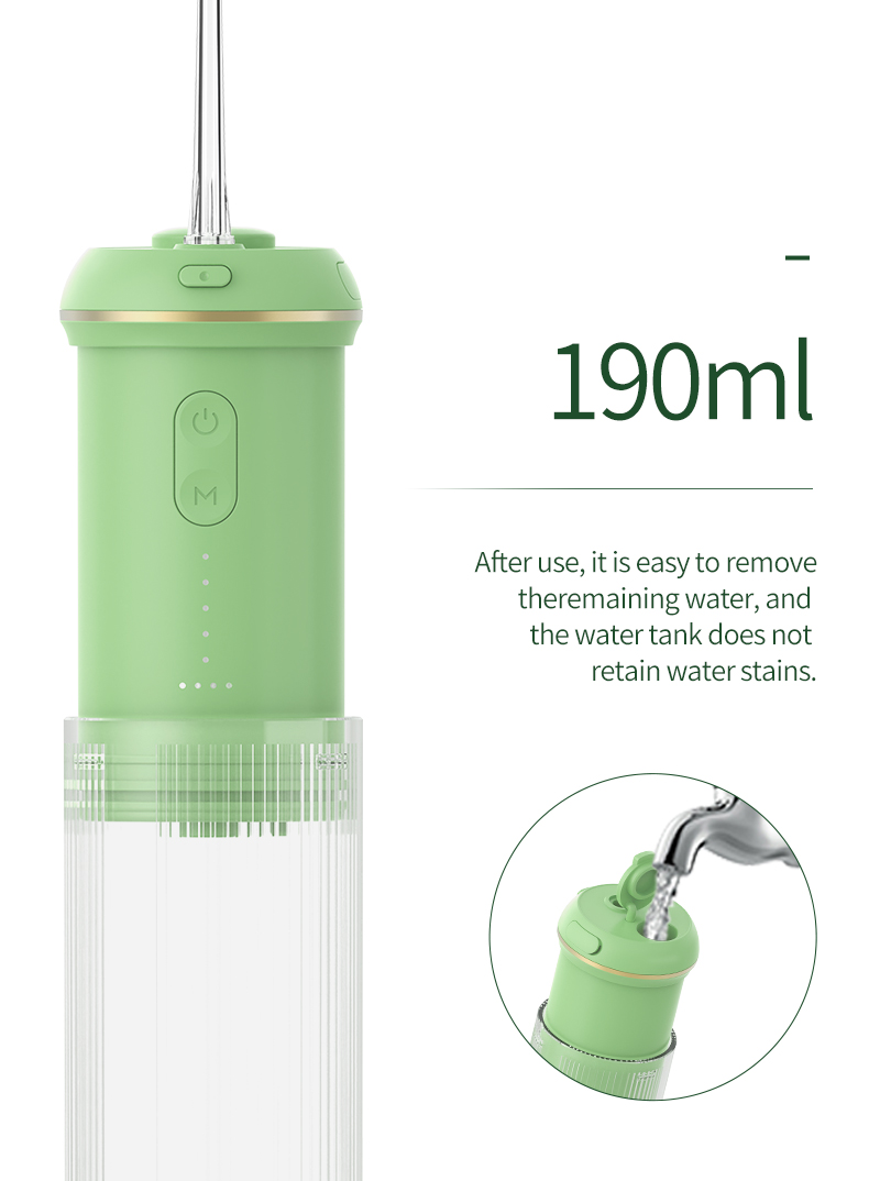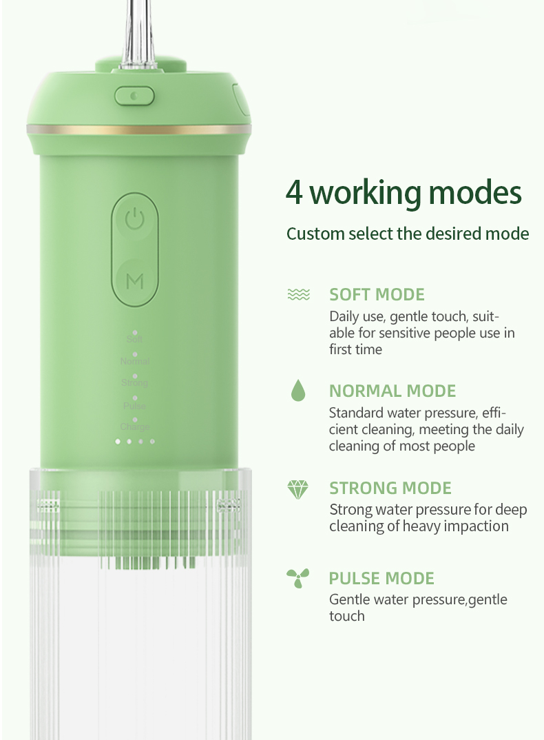 ทำความสะอาดล้ำลึกด้วยแรงดันที่สูง: เครื่องพ่นน้ำใช้เทคนิคพัลส์ล่าสุดเพื่อนำเสนอ 4 โหมดโดยมีช่วงแรงดันระหว่าง 30-90 Psi และอัตราพัลส์ 1,400-1,800 ครั้งต่อนาที เพื่อมอบน้ำที่มีความเข้มข้นสูงที่ช่วยทำความสะอาดความเครียดของฟันได้ 99.99% ออกแบบมาโดยเฉพาะสำหรับโรคปริทันต์และเครื่องมือจัดฟัน