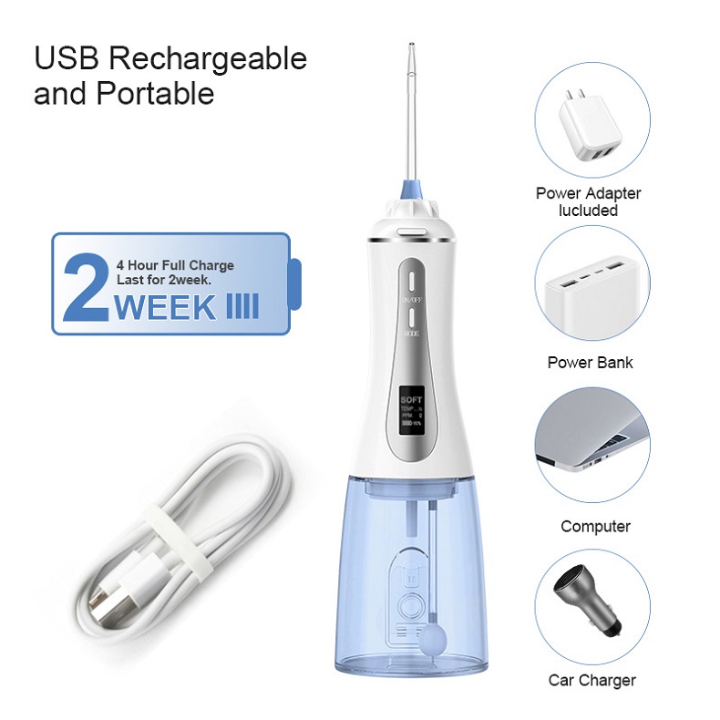 ไหมขัดฟันแบบน้ำนี้มีอายุการใช้งานแบตเตอรี่ยาวนานเป็นสองเท่าเมื่อเทียบกับแบตเตอรี่อื่นๆ ด้วยแบตเตอรี่ที่มีประสิทธิภาพเป็นมิตรกับสิ่งแวดล้อม เพียงชาร์จ 3 ชั่วโมง ก็ใช้งานได้นาน 30 วัน มีขนาดกะทัดรัดและน้ำหนักเบา เหมาะสำหรับใช้ในบ้านและระหว่างเดินทาง ไม้จิ้มฟันแบบน้ำนี้มาพร้อมกับสาย USB (ไม่รวมอะแดปเตอร์) ทำให้เป็นชุดเดินทางในอุดมคติ ประโยชน์จากอายุการใช้งานแบตเตอรี่ที่ยาวนานเป็นพิเศษ 30 วัน ทำให้เป็นโซลูชันแบบพกพาอย่างแท้จริงเพื่อความสะดวกของคุณ