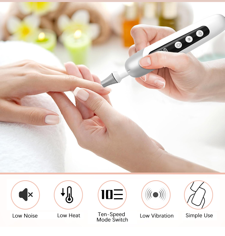- การตั้งค่าความเร็ว 10 ระดับ: สัมผัสพลังของชุดทำเล็บไฟฟ้าของเราที่มีการตั้งค่าความเร็ว 10 ระดับและการหมุนตามเข็มนาฬิกาและทวนเข็มนาฬิกาที่หลากหลาย เครื่องเจาะเล็บ efile รับประกันการตะไบที่แม่นยำบนเล็บมือและเล็บเท้าที่หนา และออกแบบมาสำหรับทุกสภาพผิว รวมถึงผู้ที่เป็นโรคเบาหวาน