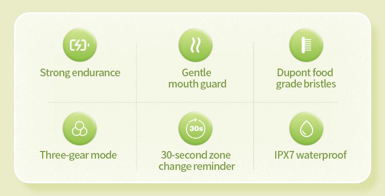 - การแปรงฟันที่มีประสิทธิภาพและปลอดภัย: ความเร็ว - การเคลื่อนไหวของแปรงสูงสุด 24,000 ครั้ง/นาที ขจัดคราบพลัคได้มากกว่าแปรงสีฟันธรรมดาถึง 7 เท่า รับประกันการตรวจสุขภาพช่องปากเด็กประจำปีที่ดีกว่า กันน้ำระดับ IPX7 สามารถล้างน้ำได้
